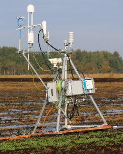 The ‘Eddy’ took a day and three people to set it up, plus a lot of preparatory work, of course, such as testing the equipment in the laboratory, laying power cables to the site and building a rudimentary platform out of planks. The tripod was built up within four hours on site. Then, electrical boxes and data loggers were attached to the tower. These are responsible for communication between the instruments, including CO₂ and methane sensors, a camera, a pressure gauge and a router for data transmission to the outside world. Each instrument has its own IP address for remote access. This not only enables the instruments to be accessed, but also controlled – a special feature of this Eddy tower that goes beyond the standard. The following day, only a little fine-tuning was needed to optimise the angles, distances and alignment of the sensors. Now the ‘Eddy’ is up and running, and the scientists expect to receive the first evaluations in about a month.