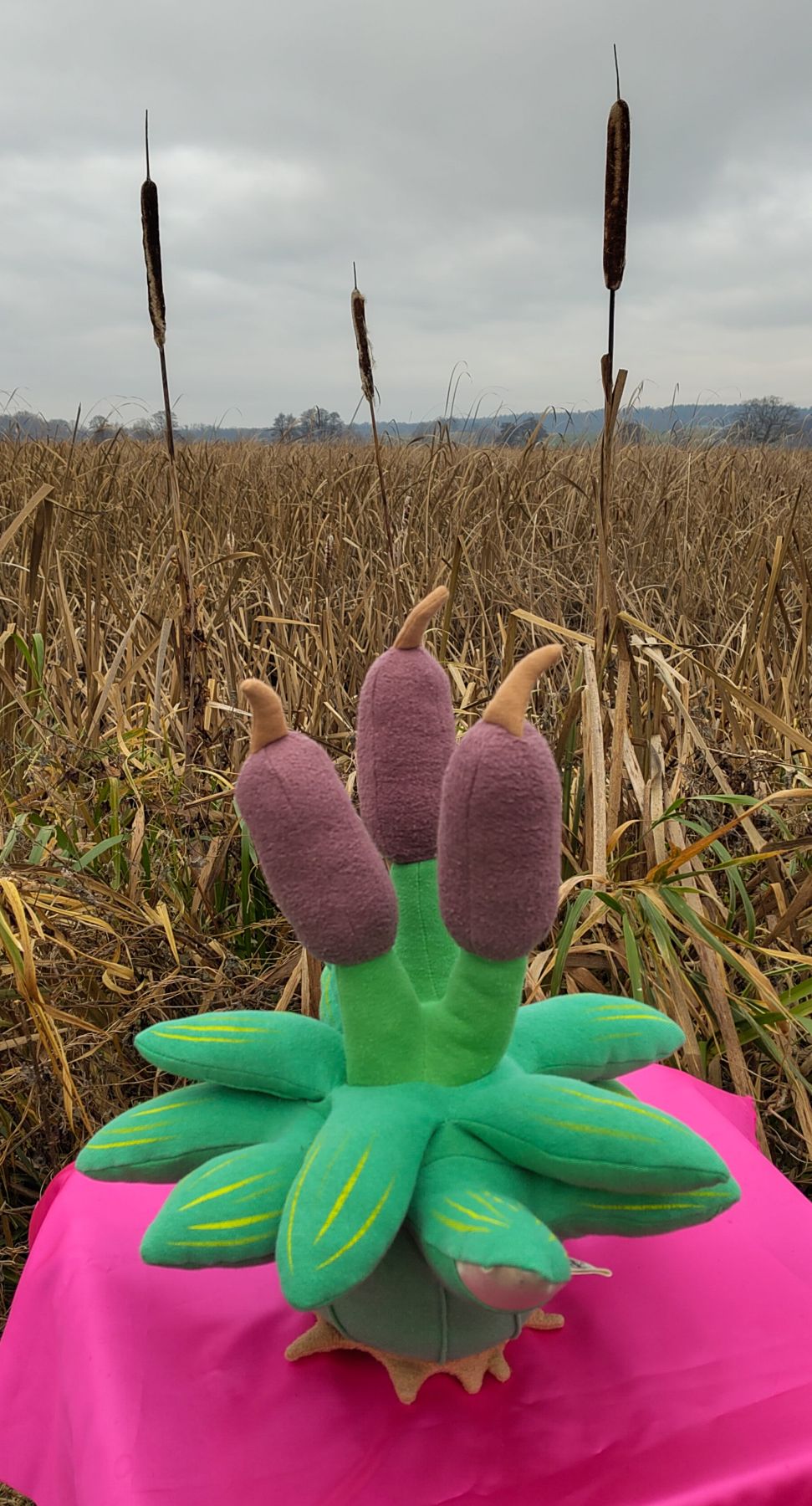 ‘I quickly found out why I had never had an experience like the one in Riga before: due to their destruction and conversion to agricultural land, peatlands are rarely visible in Germany,’ says the artist. ‘Many people have no relationship with peatlands, or only a negative one. I would like to work on that.’ Inspired by the beauty of cottongrass and cattails, he wondered why there are many cuddly animal toys but hardly any cuddly plants. For him, these plants are lovable creatures whose appearance invites us to cuddle them. With this project, he wants to explore how this form of socialisation could change our relationship with plants. Over the next months, Moore kuscheln is to take the form of a cuddly exhibition that will be flexible in size and duration, allowing it to travel to rewetting sites in Central Europe. Hundreds of cuddly plants filled with cattail seed wool invite visitors to experience the peatlands and the changes in the landscape not only metaphorically, but also in a very tangible way.
