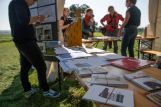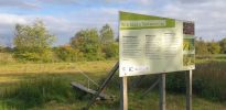 Unser erster Stopp – sieht noch nicht moorig aus, aber ein paar Schritte weiter auf der Versuchsfläche zum Rohrkolbenanbau des Paludi-PRIMA Projekts (Link) der Universität Greifswald schon. Wir bauen uns erstmal auf und sind gespannt, wer vorbeikommt.